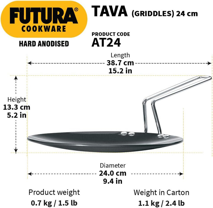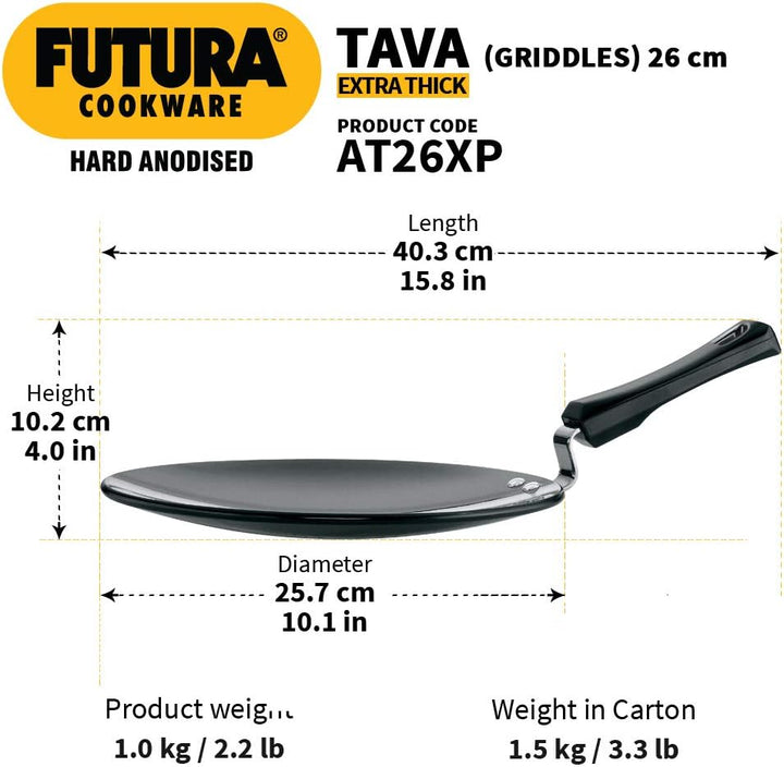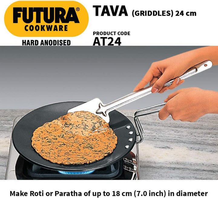 Cook soft rotis, fluffy chapatis, and crispy parathas effortlessly with the Futura Hard Anodised Concave Tawa. Crafted with precision by Hawkins, this premium-quality griddle combines durability, performance, and style. Its concave design ensures even heat distribution, making it ideal for puffing rotis and evenly cooking flatbreads every time.