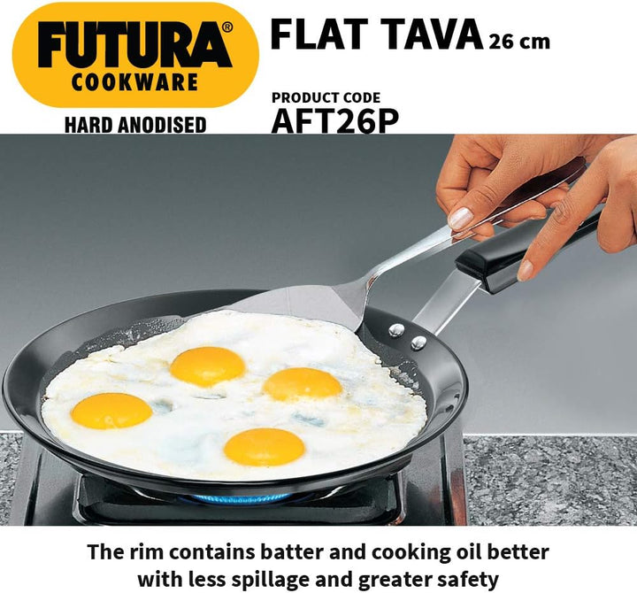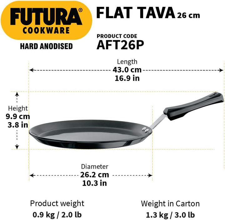 Experience perfect cooking with the Futura Hard Anodised Flat Tawa, designed to deliver superior performance, durability, and style. Made from premium-grade aluminium, this 10-inch flat griddle is ideal for making rotis, dosas, pancakes, parathas, and much more. Its hard anodised surface ensures even heat distribution and long-lasting strength, while the ergonomic handle offers a safe and comfortable grip.