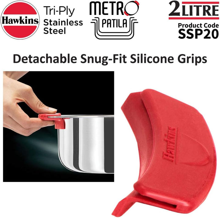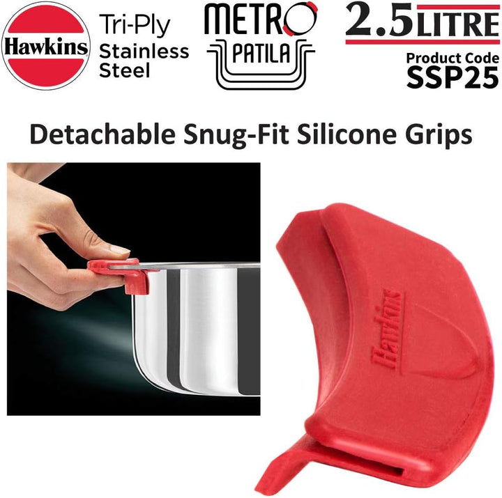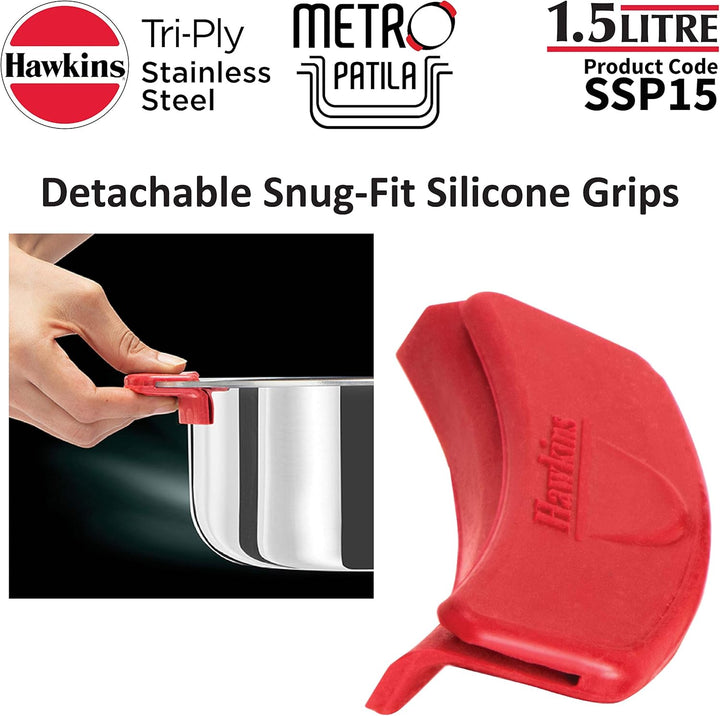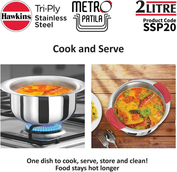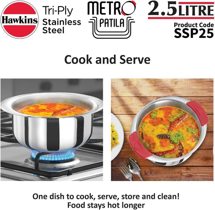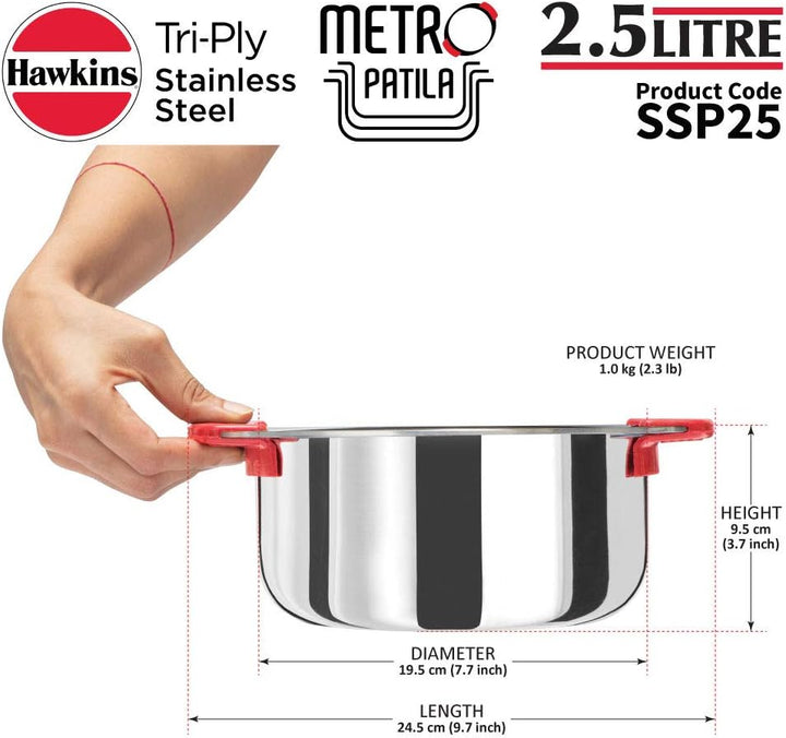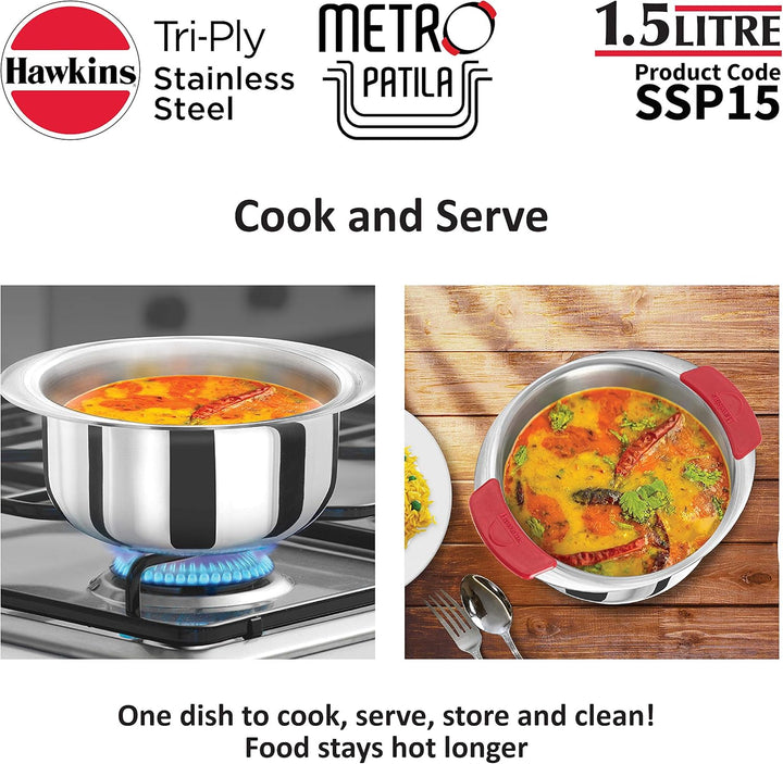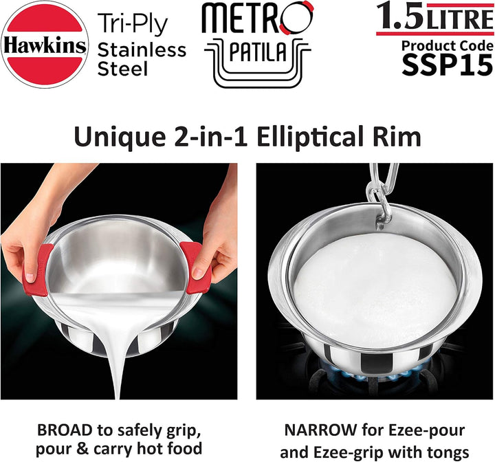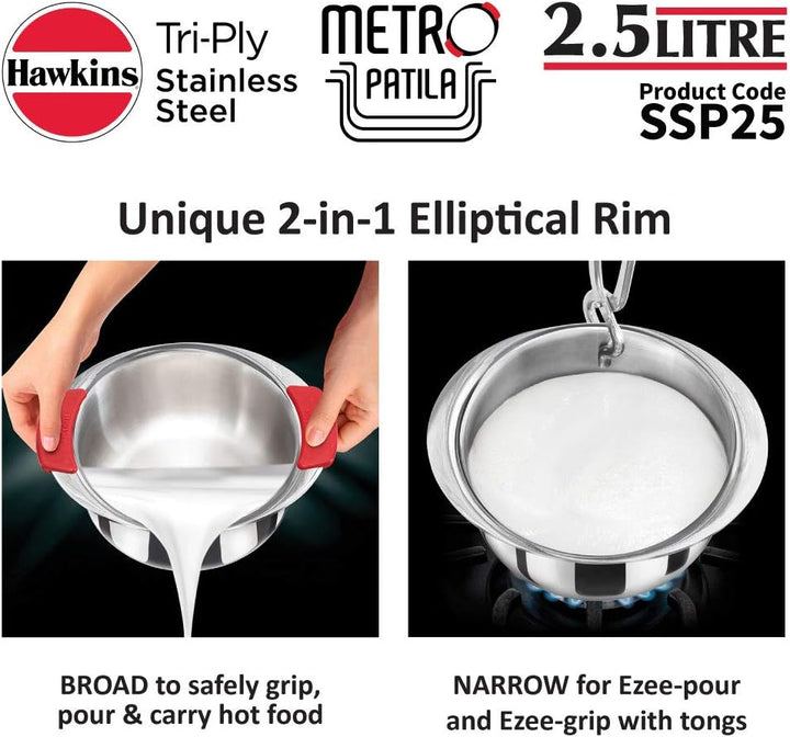 Hawkins 1.5 , 2 , 2.5 Litre Metro Patila Triply Stainless Steel Tope Induction Bhagona Tapeli Silver