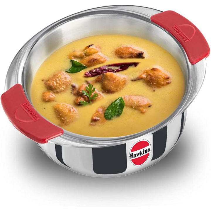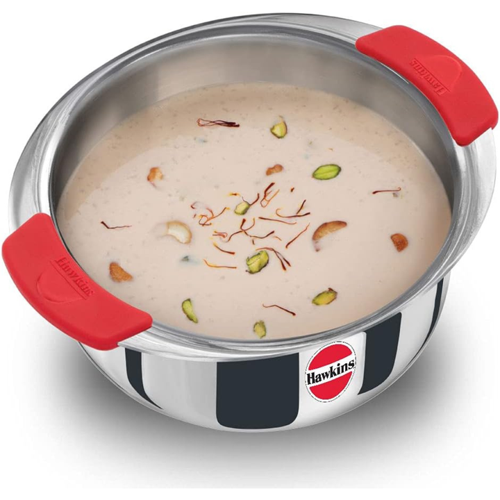 - 2.5 mm Thick Hawkins Tri-Ply Stainless Steel - Food-grade, hygienic, spreads heat evenly