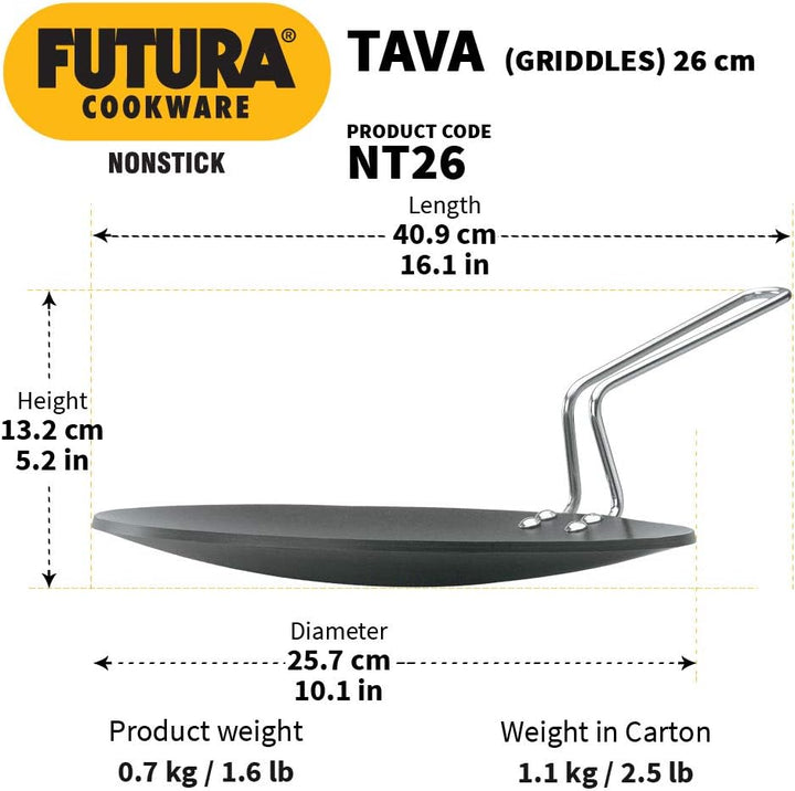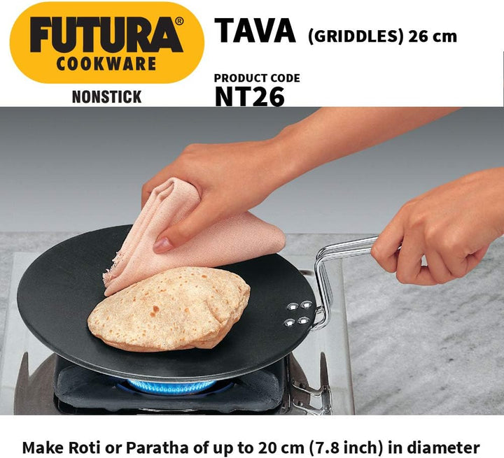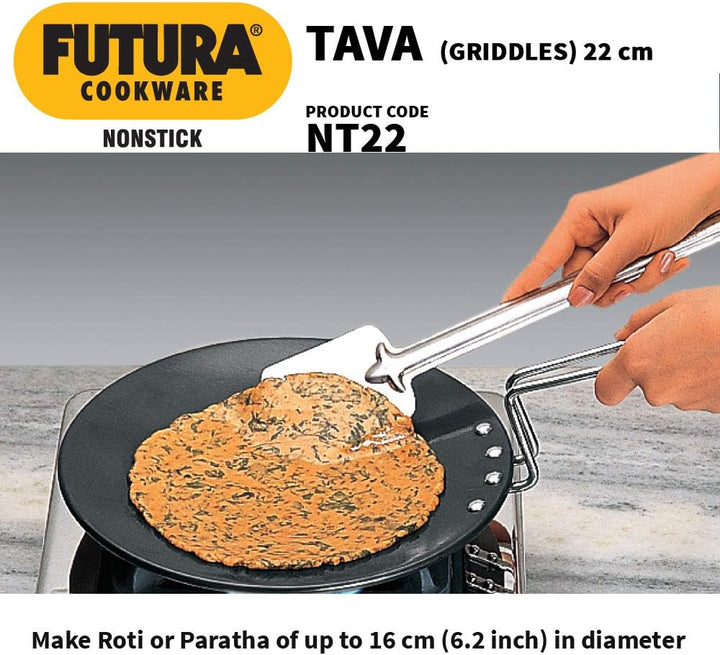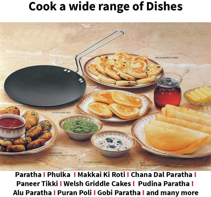 Nonstick Tava can cook all the foods that can be cooked in Hard Anodised Tava with less or no oil or butter, if required. The Futura Flat Nonstick Tava are particularly preferred for cooking popular South Indian snacks such as dosa and uttapam.