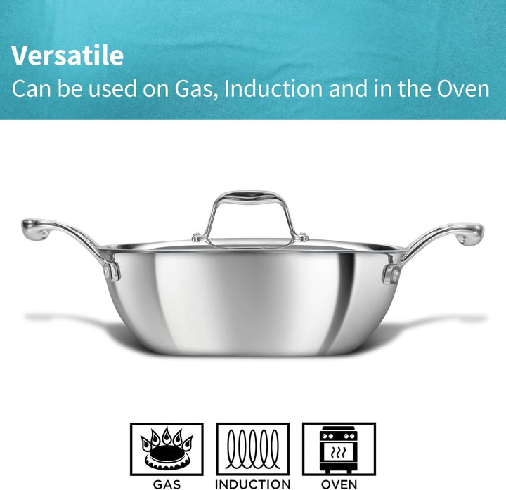 - Extra-thick 3mm Tri-Ply Stainless Steel - Food will not stick and burn even with less oil