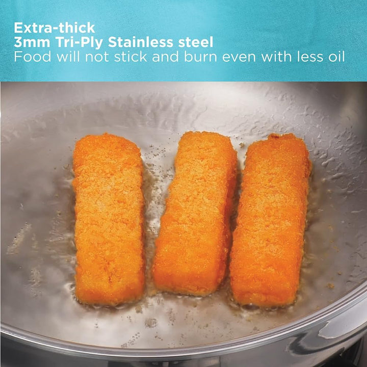 - Extra-thick 3mm Tri-Ply Stainless Steel - Food will not stick and burn even with less oil
