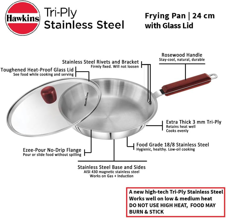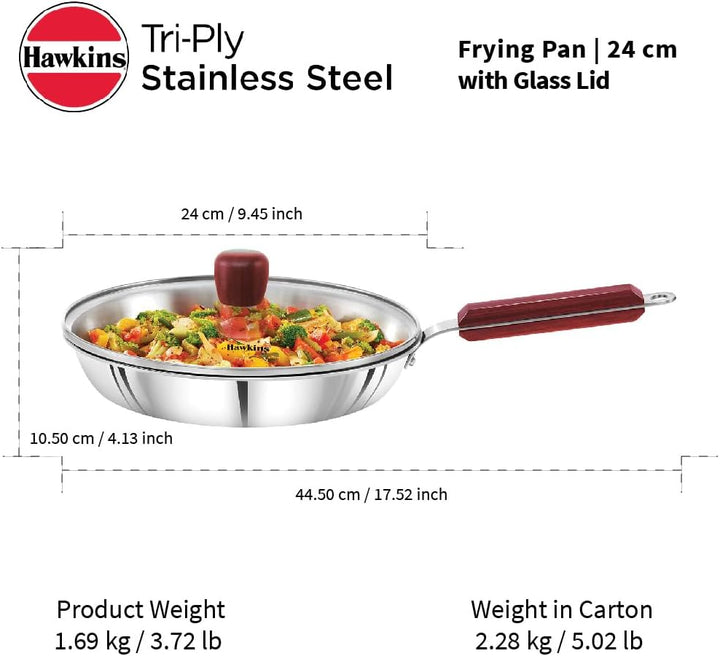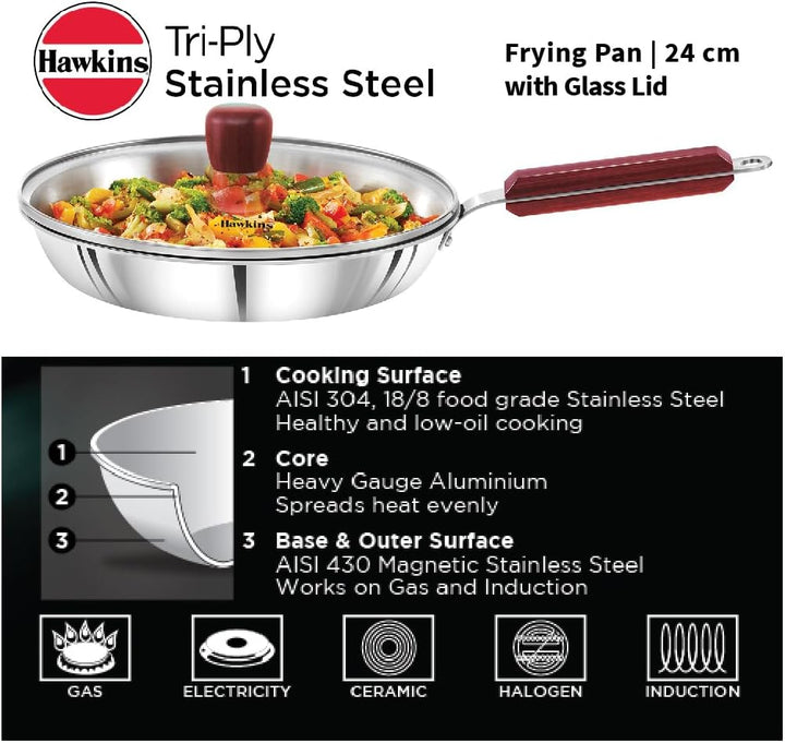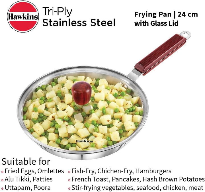 HAWKINS Triply 3 mm Stainless Steel Frying Pan Glass with Lid (26 cm)