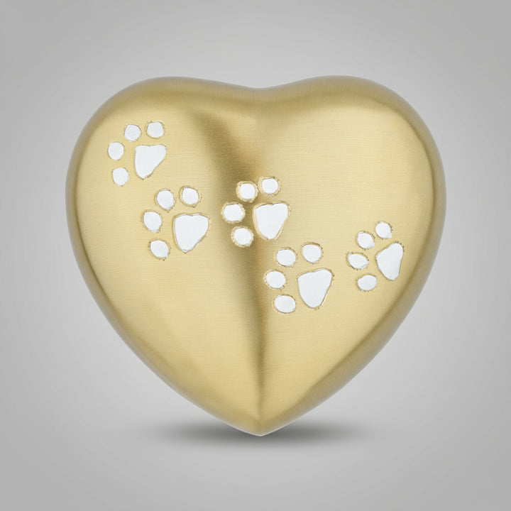 - These exclusive keepsake heart urns are made of finest quality Brass and come in 5 colors with paw print – Chocolate, Pewter, Gold, Black and Red.