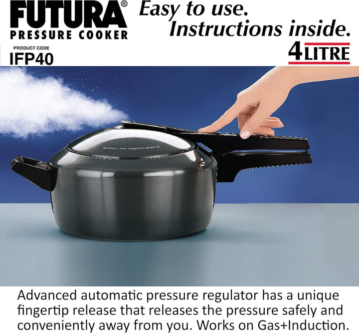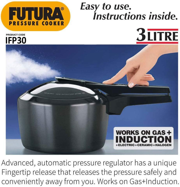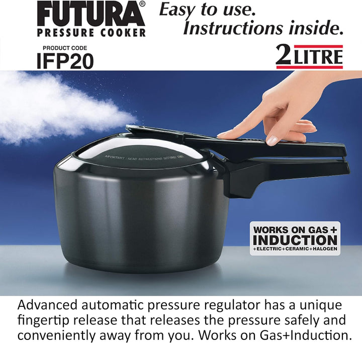 Hawkins Futura Pressure Cooker, Hard Anodised Pressure Cooker, Induction Cooker, Small Cooker, Black